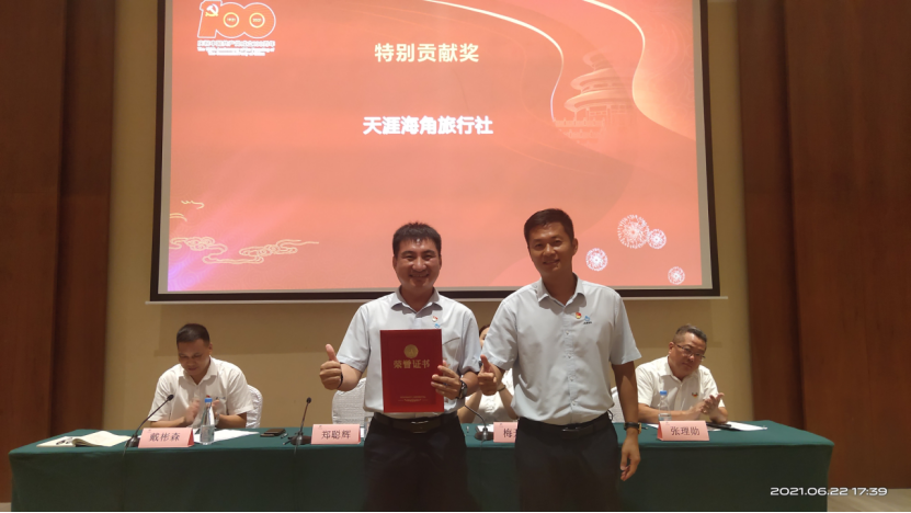 为庆祝中国共产党创建100周年,表彰集团2020-2021年度工作中涌现出来的先进基层党组织、优秀共产党员、优秀党务工作者和2020年度先进集体、优秀个人,激励集团各级党组织和广大党员干部职工见贤思齐、争做先锋,在推进集团高质量开展和海南自贸港建设中作出新贡献,以优异成绩向建党100周年献礼。6月22号下午,三亚旅文集团庆祝中国共产党创建100周年“七一”表彰大会暨2020年度先进表彰大会在天涯海角红树林国际会议中心隆重召开。