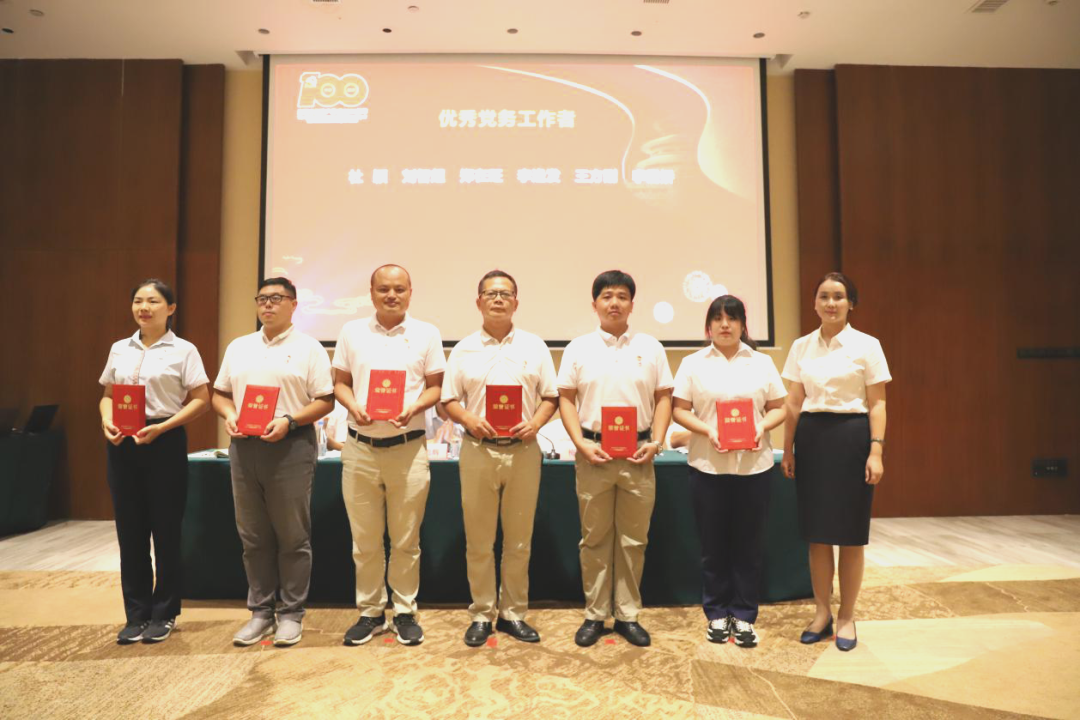 集团党委副书记、总经理梅开志同志为优秀党务工作者颁奖
