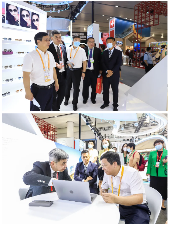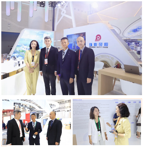 三亚旅文集团党委书记、董事长郑聪辉,总经理梅开志一行亮相消博会