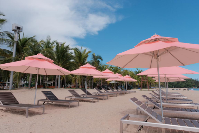西部天涯•海洋运动俱乐部位于天涯海角游览区西区,俱乐部初步规划为商业区、游客服务中心、码头等三大区域和海上娱乐、陆地娱乐、马术体验等三大功能中心,营业面积达到 45000平米 。俱乐部从浪漫天涯的角度出发打造,以粉色为园区主基调。一系列粉色的创意装置与打卡点将幸福感强烈的色彩语言运用到整个园区环境当中,满足年轻受众个性化、小众化的心理。后期将充分发挥互联网对的旅游业赋能作用,顺利获得创意表演、云直播等系列沉浸式互动场景,为消费者解锁网红打卡时尚新地标。