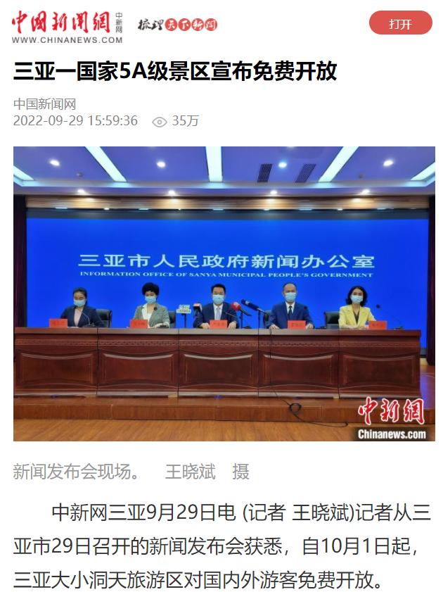 三亚旅文集团党委书记、董事长就大小洞天免费开放一事接受媒体采访
