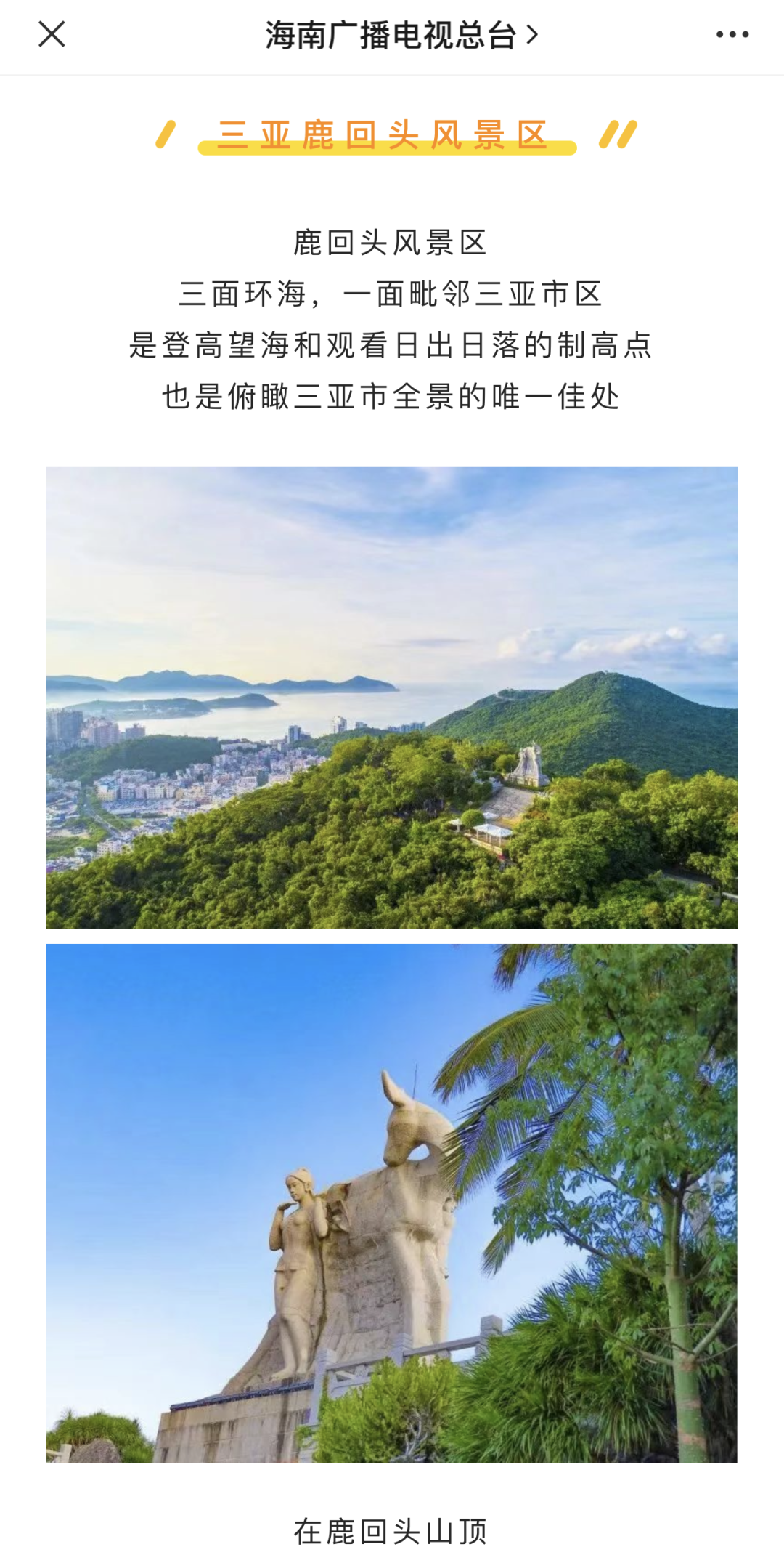 海南电视总台关注三亚旅文集团旗下景区鹿回头精彩的线下活动