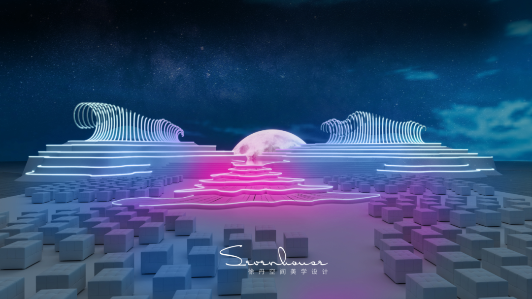 舞台设计灵感来源于天涯海角壮丽的海景,翻涌的海浪落下形成的层层浪花,洋洋洒洒仿佛坠入人间的繁星,将大海神秘、梦幻和动感的一面展现得淋漓尽致