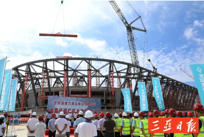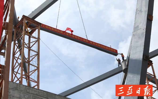 5月31日上午,三亚市体育中心体育场项目钢结构最后一根钢构件完成吊装,标志着体育场项目取得了阶段性胜利。