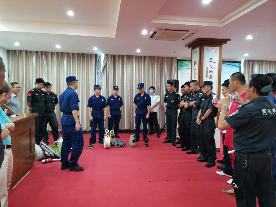 培训活动中,消防大队主要结合工作需要,讲解队列会操、初战灭火操、两盘水带连接、着装灭火的操作规范、要领、注意事项等内容,并现场进行了示范操作。