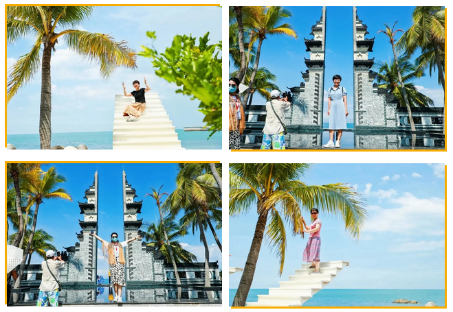游走于景区内,宛如沉浸在一副古朴优美的山海画中,崖州湾弧弦百里,碧波万倾;鳌山云深林翠,岩奇洞幽;海岸遍布着神工鬼斧、形态各异的大小石群;山海之间宛如一幅古朴恢弘的长卷画。初见此景,抗疫英雄们不禁驻足拍照,流连忘返。