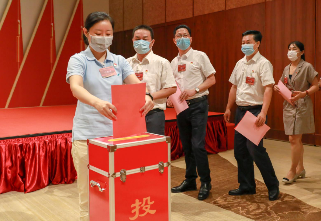 到会的113名代表以无记名投票的方式,选举刘勇、张理勋、郑聪辉、梅开志、戴彬森等5名同志为集团党委委员,选举马艳、陈国锋、郭远盛、潘锦欢、戴彬森等5名同志为集团纪委委员。随后集团党委和纪委分别召开全体委员会议,选举郑聪辉同志为集团党委书记,梅开志、戴彬森同志为集团党委副书记,选举戴彬森同志为集团纪委书记,郭远盛同志为集团纪委副书记。