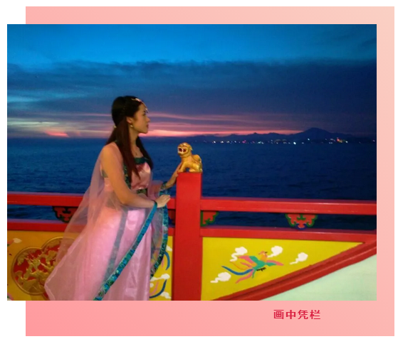 凤凰展翅,金狮憨然,雕栏红柱旁,静静凝望大海的你。在天光与云影的映衬中,浓烈的色彩交织出一幅美丽的油画。