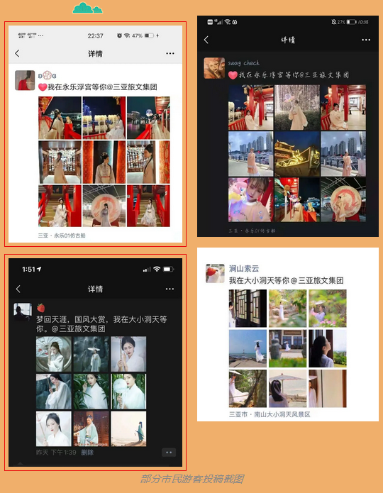 此次活动已接近尾声,市民游客呼应热情依然不减。现在收到的投稿作品,每张都如画卷一般惊艳。活动参与者请于4月6日前将本人姓名+联系电话、参赛作品、朋友圈点赞截图发送至三亚旅文集团公众号后台。