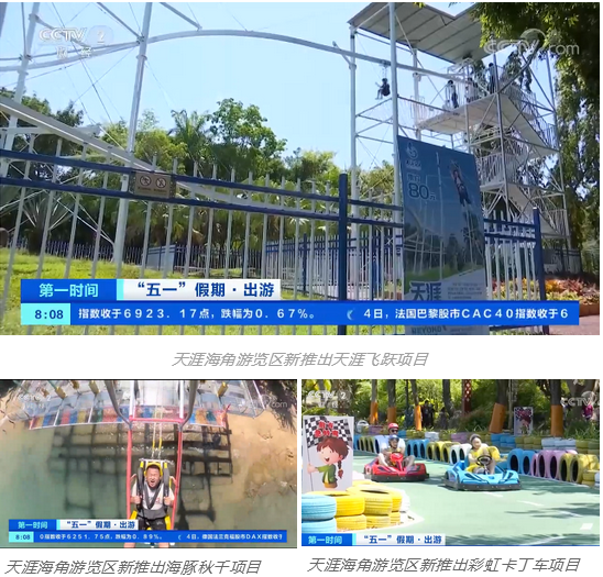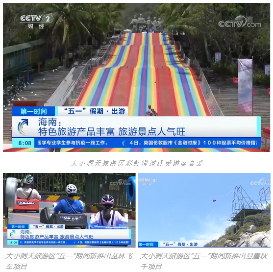 5月5日,央视CCTV-2财经频道[第一时间]栏目播发报道《“五一”假期·出游 海南:特色旅游产品丰富 旅游景点人气旺》,报道三亚大小洞天景区、三亚天涯海角游览区今年五一假期解锁潮趣新玩法,不断上线旅游新产品,满足游客多样化的需求。详情↓↓↓